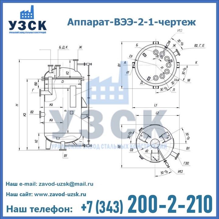 Емкостные аппараты ВЭЭ представляют вертикальную цилиндрическую емкость с эллиптическими днищами. В силу специфической формы сосуды выдерживают избыточное давление. Материалы изготовления внутренней полости не подвержены коррозии. Сосуд используется в Жезказгане для хранения сжиженных газов, жидкостей и как промежуточное звено технологической цепочки в химической, нефтехимической, целлюлозной промышленности.