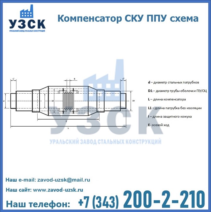 Уральский Завод Стальных Конструкций в Жезказгане предлагает готовые изделия, а также вы можете приобрести компенсатор СКУ ППУ под заказ. Наш завод располагает всем необходимым оборудованием для производства нестандартных позиций компенсатора СКУ в ППУ изоляции. Завод «УЗСК» предлагает большой выбор качественных и надежных компенсаторов СКУ ППУ, полностью укомплектованных и готовых к эксплуатации. Мы гарантируем соответствие нашей продукции всем требованиям ГОСТ и ТУ, износостойкость и высокую производительность. Наше предприятие поставляет и производит оборудование, имеющее длительную гарантию и большой эксплуатационный ресурс. Если вы хотите заказать сильфонные компенсационные устройства СКУ ППУ или другое оборудование с доставкой, наши специалисты помогут рассчитать стоимость транспортных расходов и организуют доставку товара. Вы можете оформить заказ на продукцию на нашем сайте, для этого достаточно заполнить форму обратной связи.