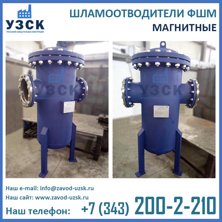 Являясь непосредственным изготовителем фильтров магнитных ФШМ, Уральский завод стальных конструкций предлагает самые низкие цены на шламоотделители ФШМ Ду250 в Жезказгане. Производство магнитных шламоотводителей осуществляется в самые короткие сроки специалистами сварочного производства НАКС по аттестованной технологии сварки при помощи сварочного оборудования, аттестованного Национальным агентством контроля сварки.
